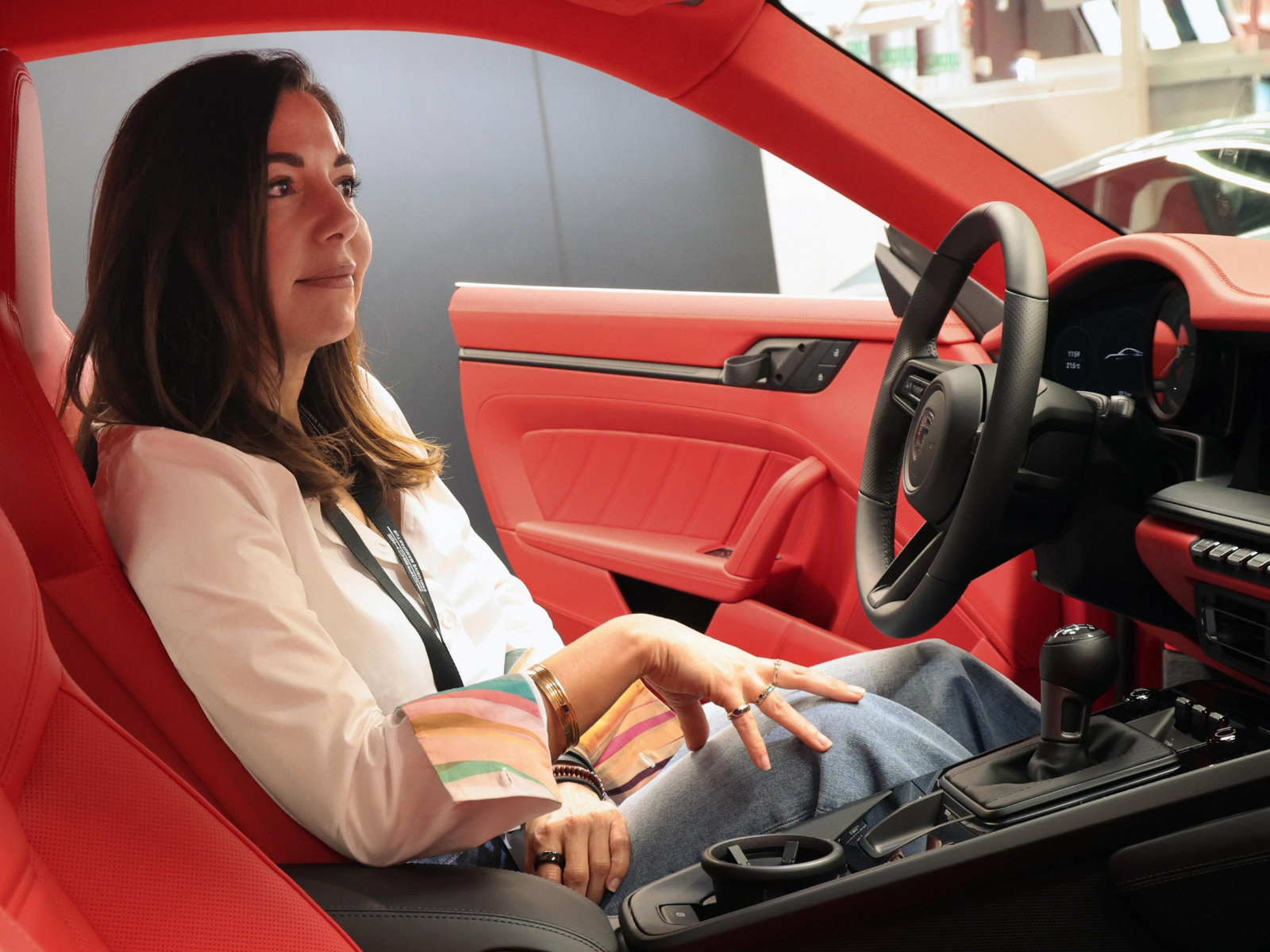 Chiếc của Klussmann mang gói Heritage Design, sơn Shore Blue Metallic độc quyền, nội thất vải Classic Cognac kẻ sọc đen. Xe của Taher được cá nhân hóa thông qua chương trình Sonderwunsch, sơn màu Rose Red Paint to Sample Plus, nội thất đỏ Guards Red đồng bộ.