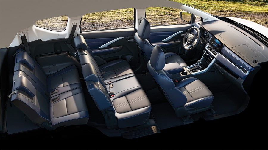 Không gian 7 chỗ hoàn toàn mới 2 tông màu đen và xanh navy, trang bị cao cấp kết hợp với những vật liệu mềm cho cảm giác tinh tế và thoải mái hơn.